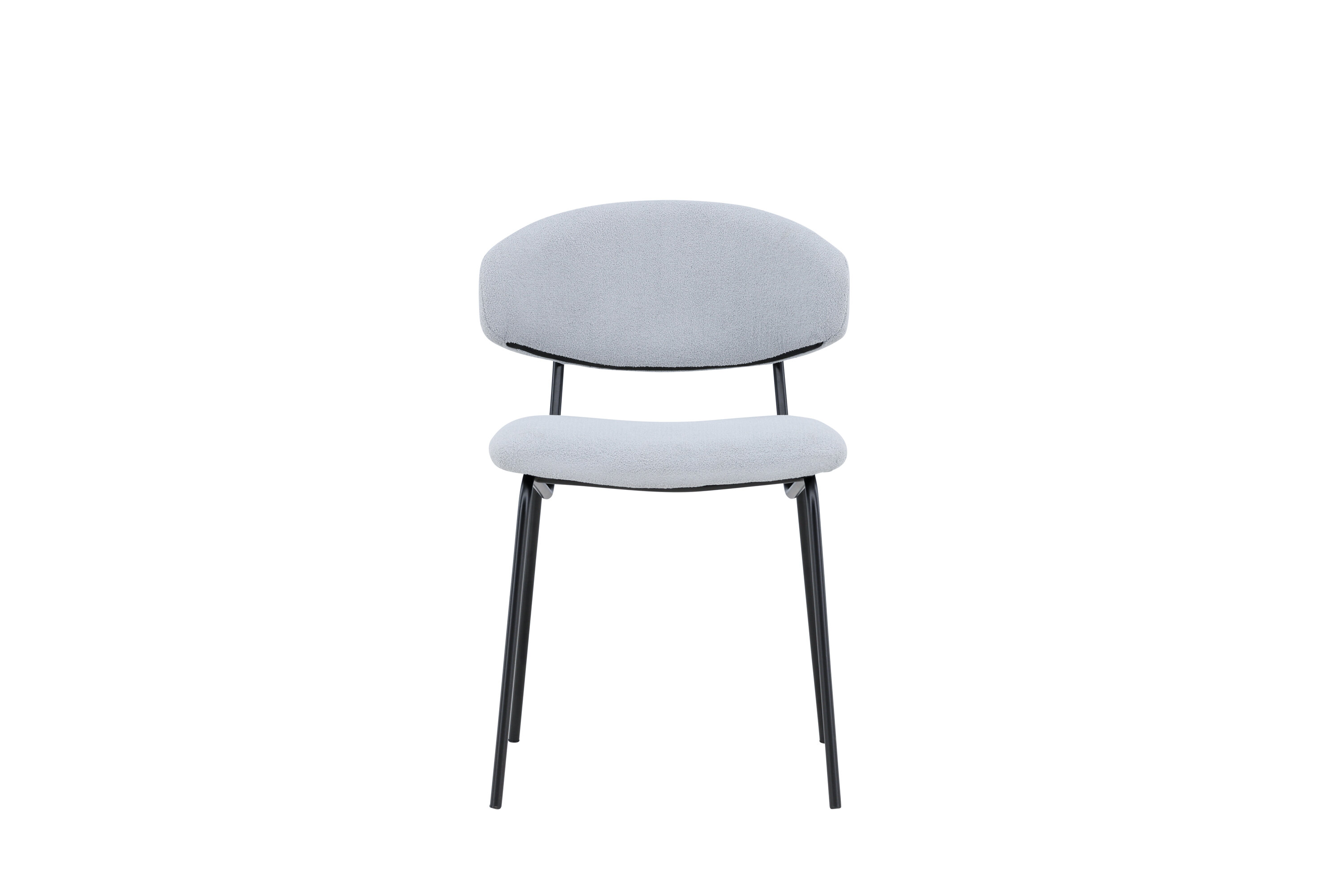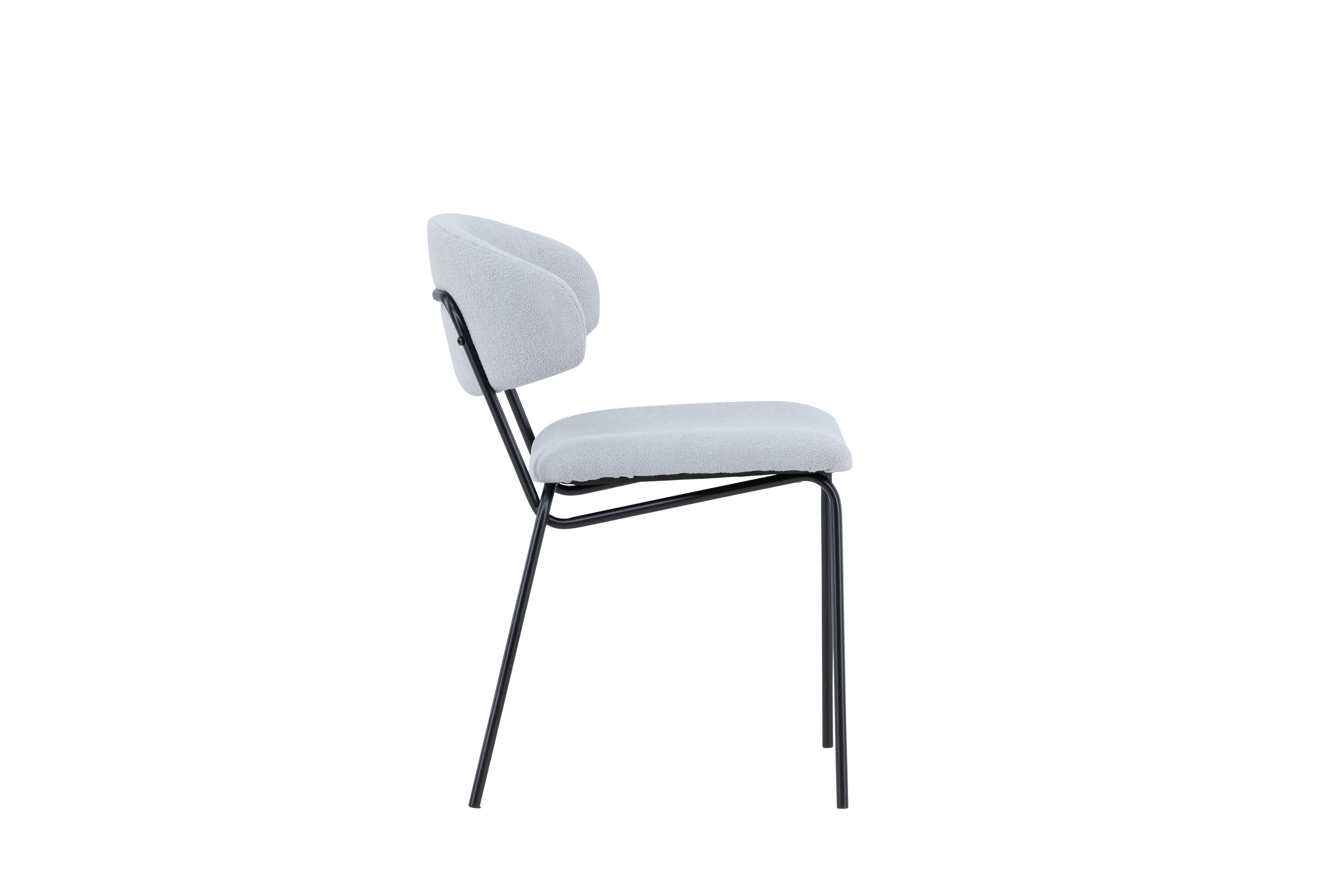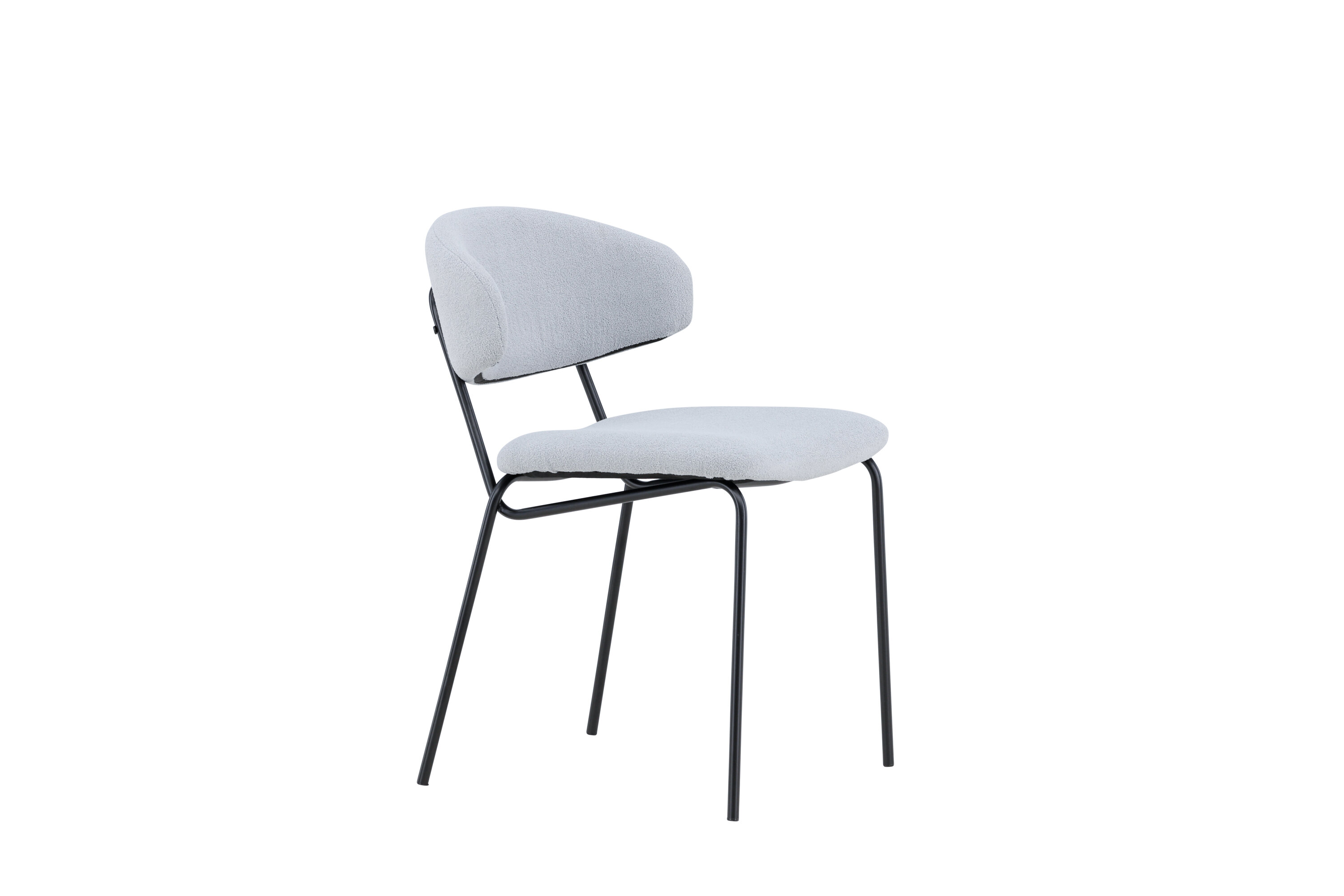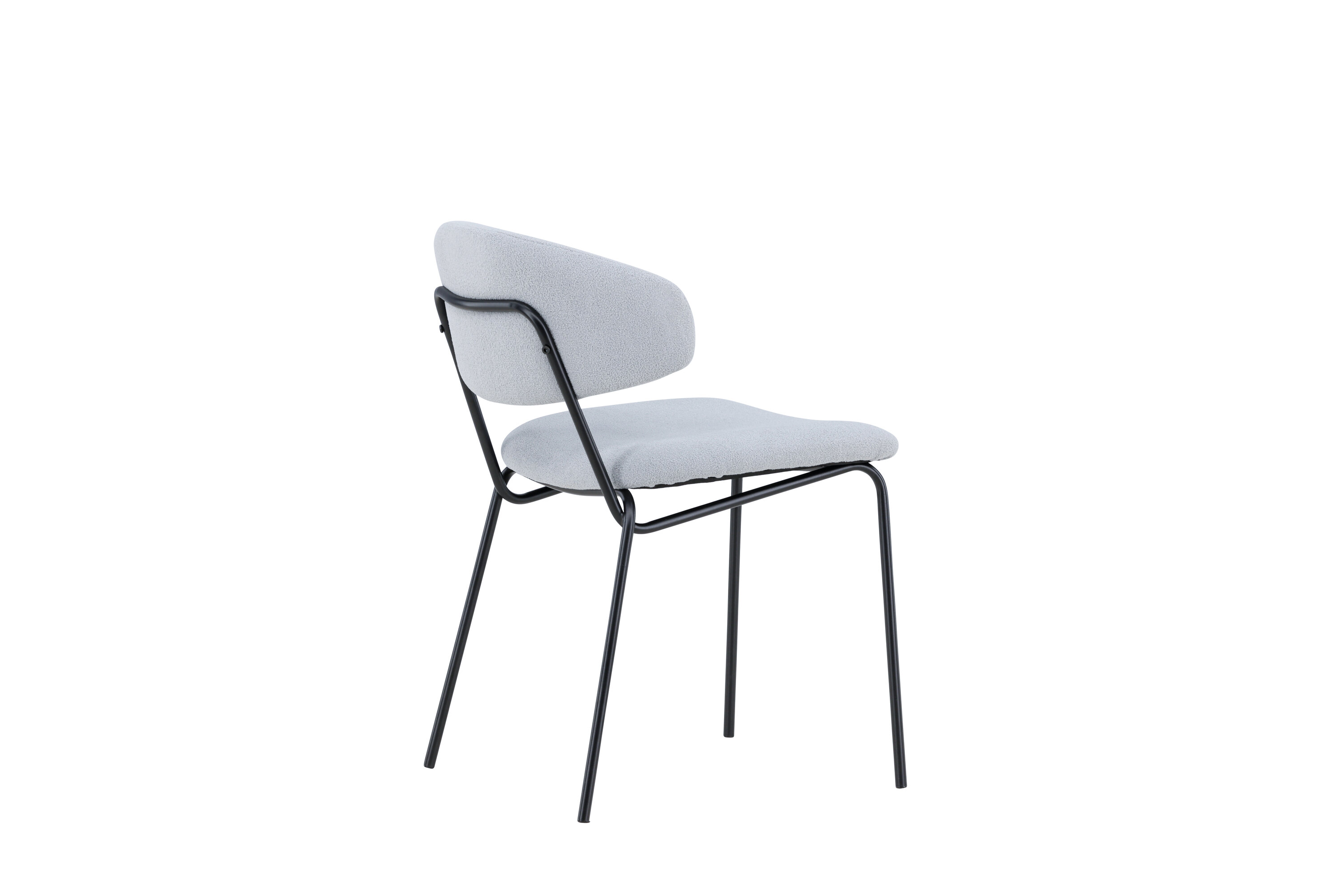 Découvrez Chico - la chaise élégante qui rehaussera l'atmosphère de votre salle à manger. Le siège de la chaise est rembourré en bouclé bleu et ses pieds sont en acier noir, créant un contraste impressionnant. Chico est livré dans un pack pratique de deux chaises.