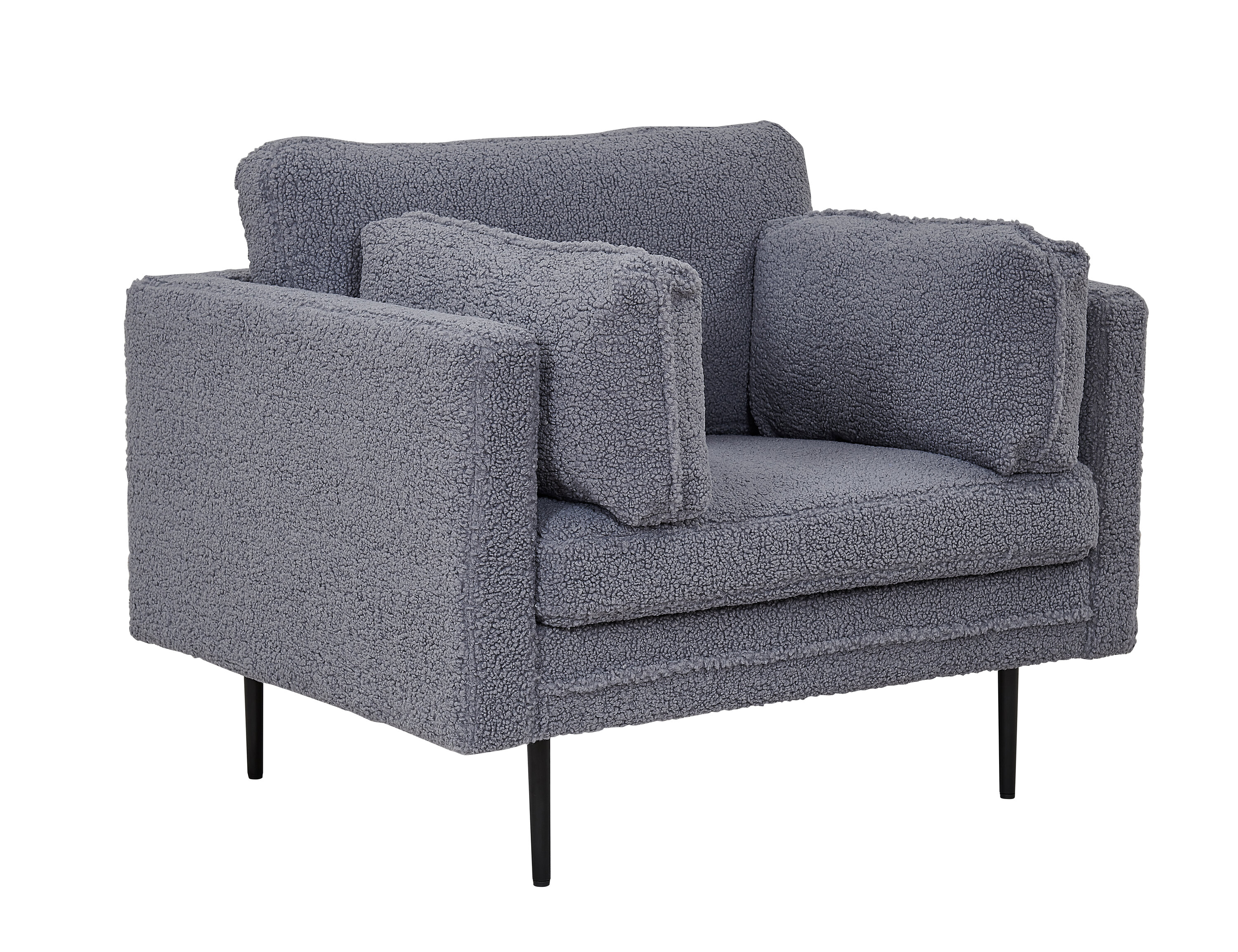 Confortable, luxueux et incroyablement confortable - un vrai fauteuil tout simplement ! Notre fauteuil élégant de la série Boom Inger procure une sensation incroyablement chaleureuse et invitante à votre maison et prolongera sûrement votre précieux temps à la maison. La plaine en peluche grise est aussi confortable que tendance. Le design est intemporel avec des formes nordiques droites et des jambes métalliques étroites. Offrez-vous un endroit agréable pour vous détendre et laissez le fauteuil devenir le cœur du salon !