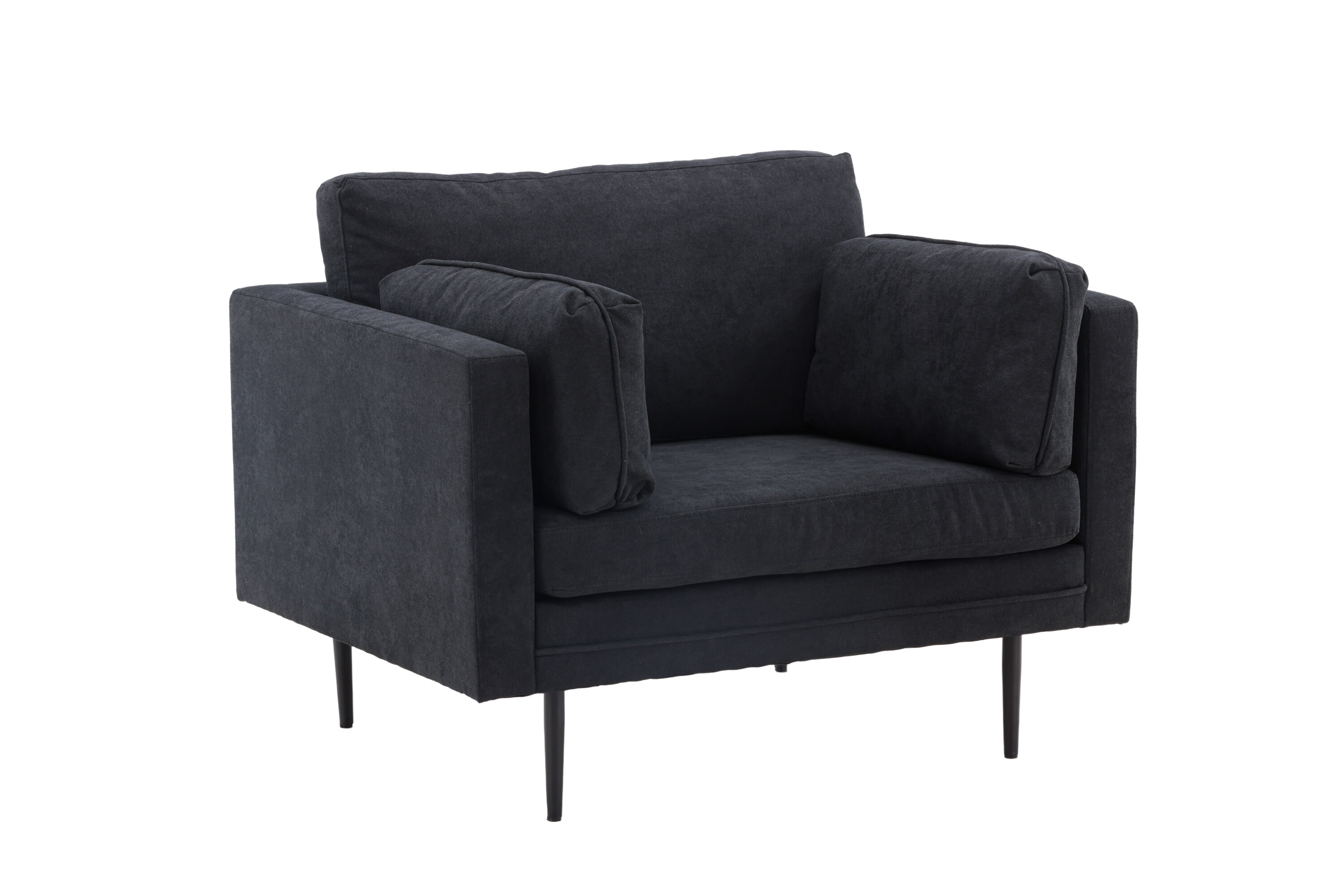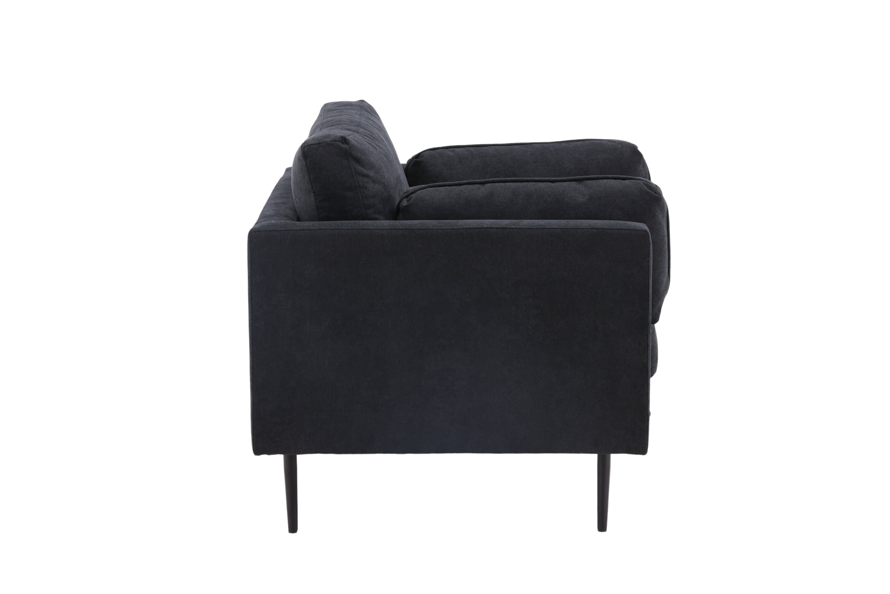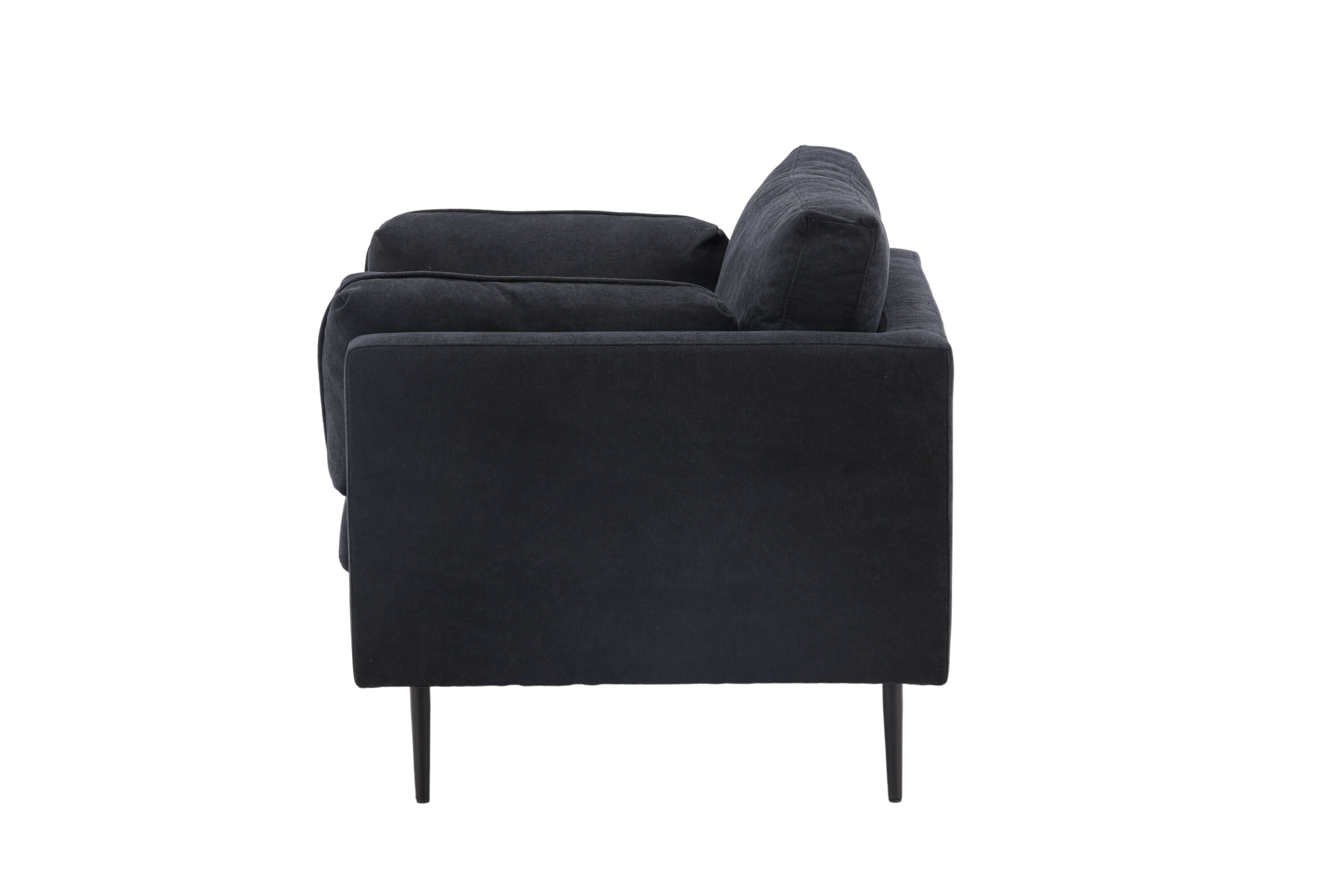 Boom est un fauteuil moderne avec un confort élevé et un design élégant ! La robe est en tissu polyester noir avec un mélange de lin facile à gérer et qui donne également une impression élégante au salon. Le design droit mais en même temps doux et les jambes étroites et hautes créent une sensation aérée et invitante et facilitent également l'aspirateur. Ce fauteuil noir a tout simplement un design global incroyablement bien pensé avec un dossier habillé qui permet de placer le fauteuil au milieu de la pièce. Vous pouvez donc choisir complètement vous-même, meubler le fauteuil seul comme une icône de style ou en groupe avec notre canapé 3 places qui fait également partie de la série Boom. Il n'y a pas de limites quand il s'agit d'un meuble moderne et intemporel comme celui-ci !