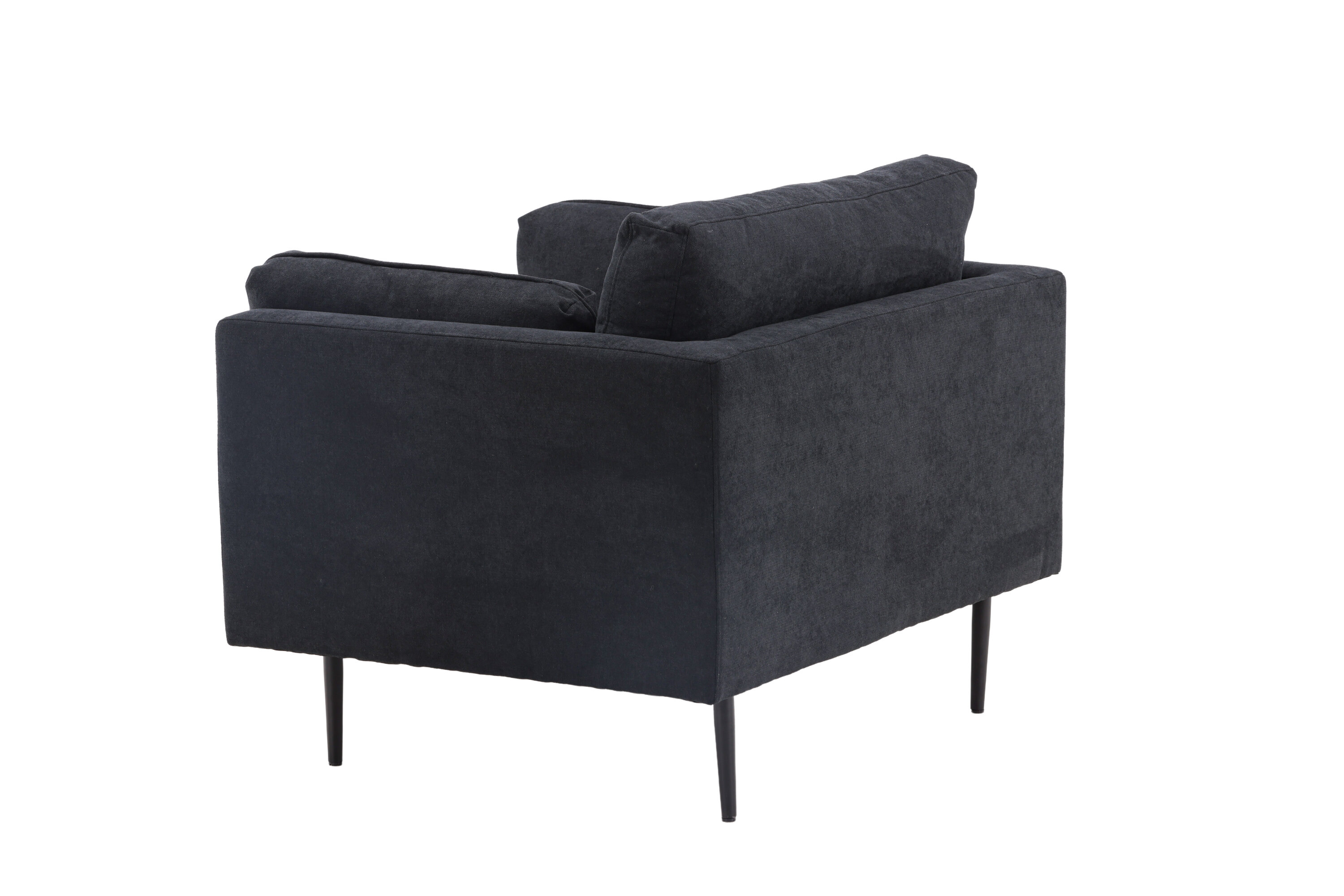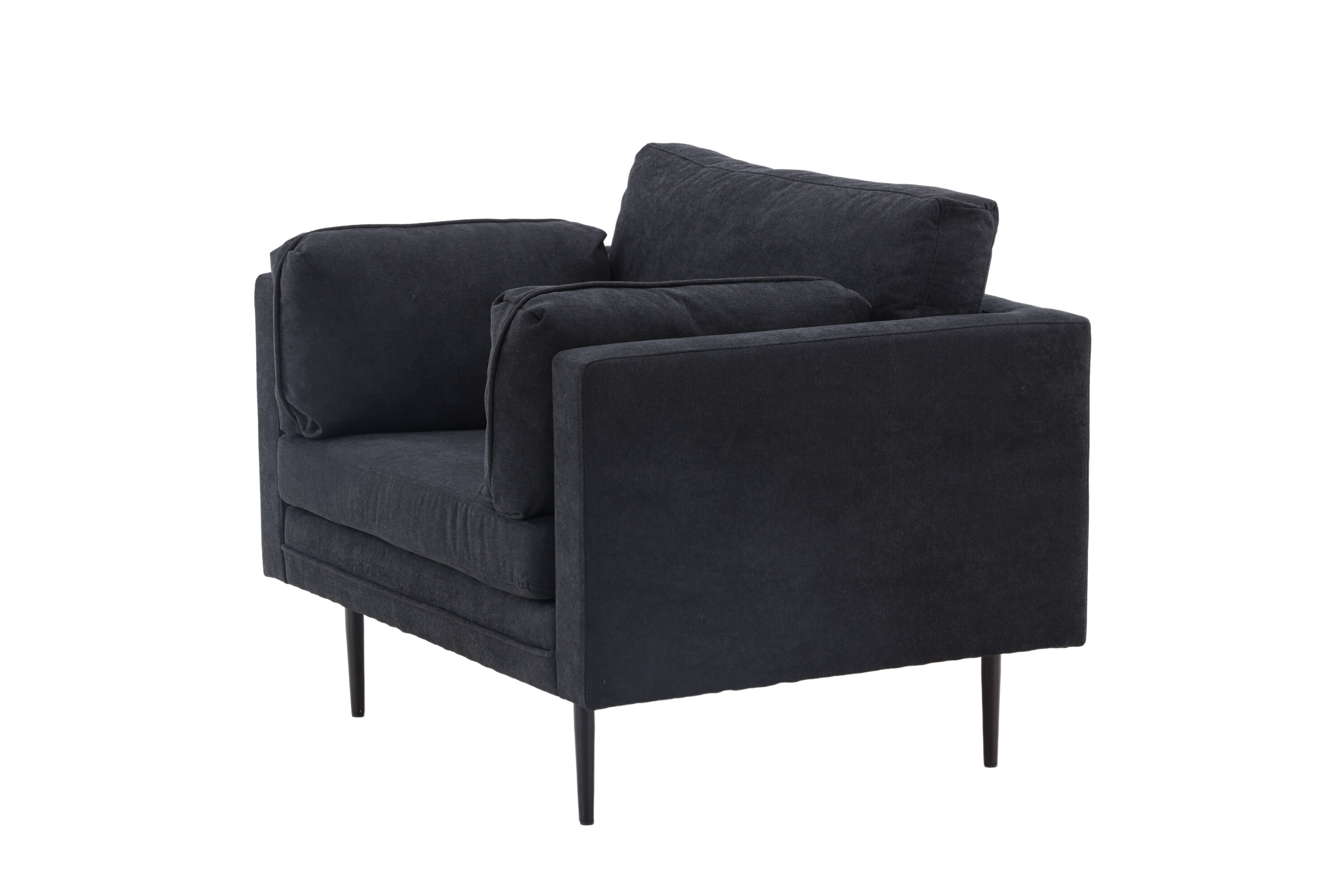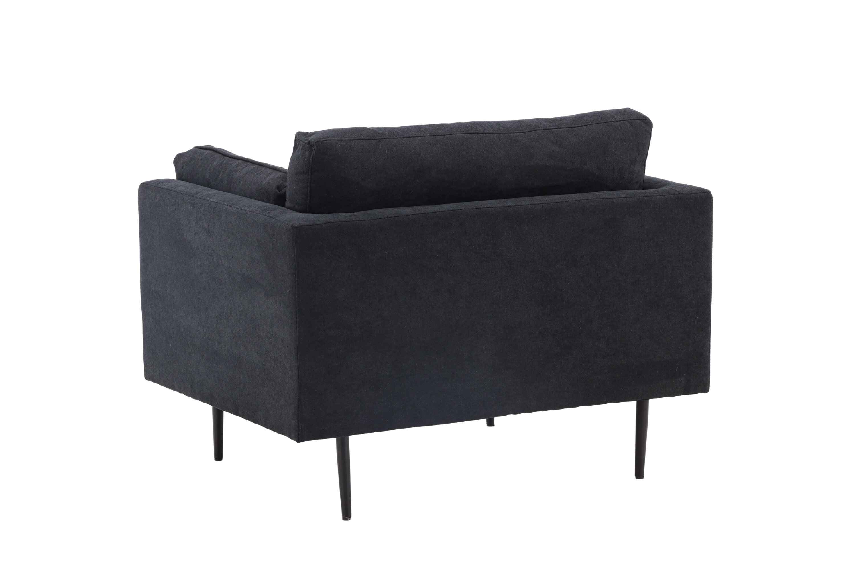 Boom est un fauteuil moderne avec un confort élevé et un design élégant ! La robe est en tissu polyester noir avec un mélange de lin facile à gérer et qui donne également une impression élégante au salon. Le design droit mais en même temps doux et les jambes étroites et hautes créent une sensation aérée et invitante et facilitent également l'aspirateur. Ce fauteuil noir a tout simplement un design global incroyablement bien pensé avec un dossier habillé qui permet de placer le fauteuil au milieu de la pièce. Vous pouvez donc choisir complètement vous-même, meubler le fauteuil seul comme une icône de style ou en groupe avec notre canapé 3 places qui fait également partie de la série Boom. Il n'y a pas de limites quand il s'agit d'un meuble moderne et intemporel comme celui-ci !