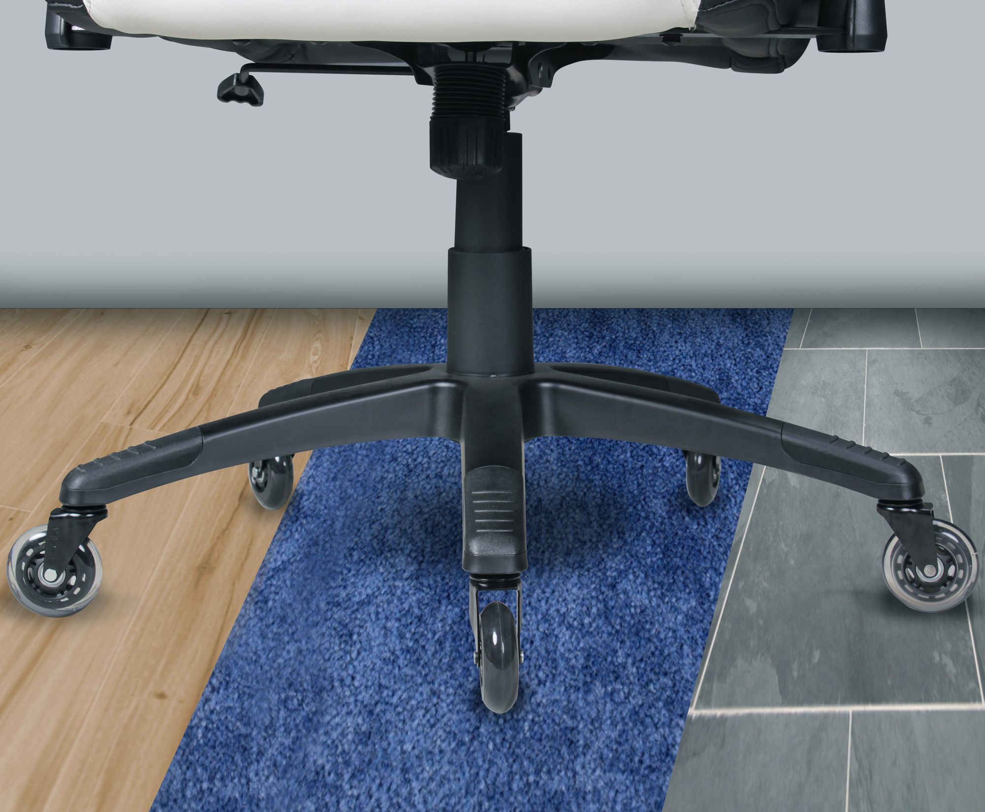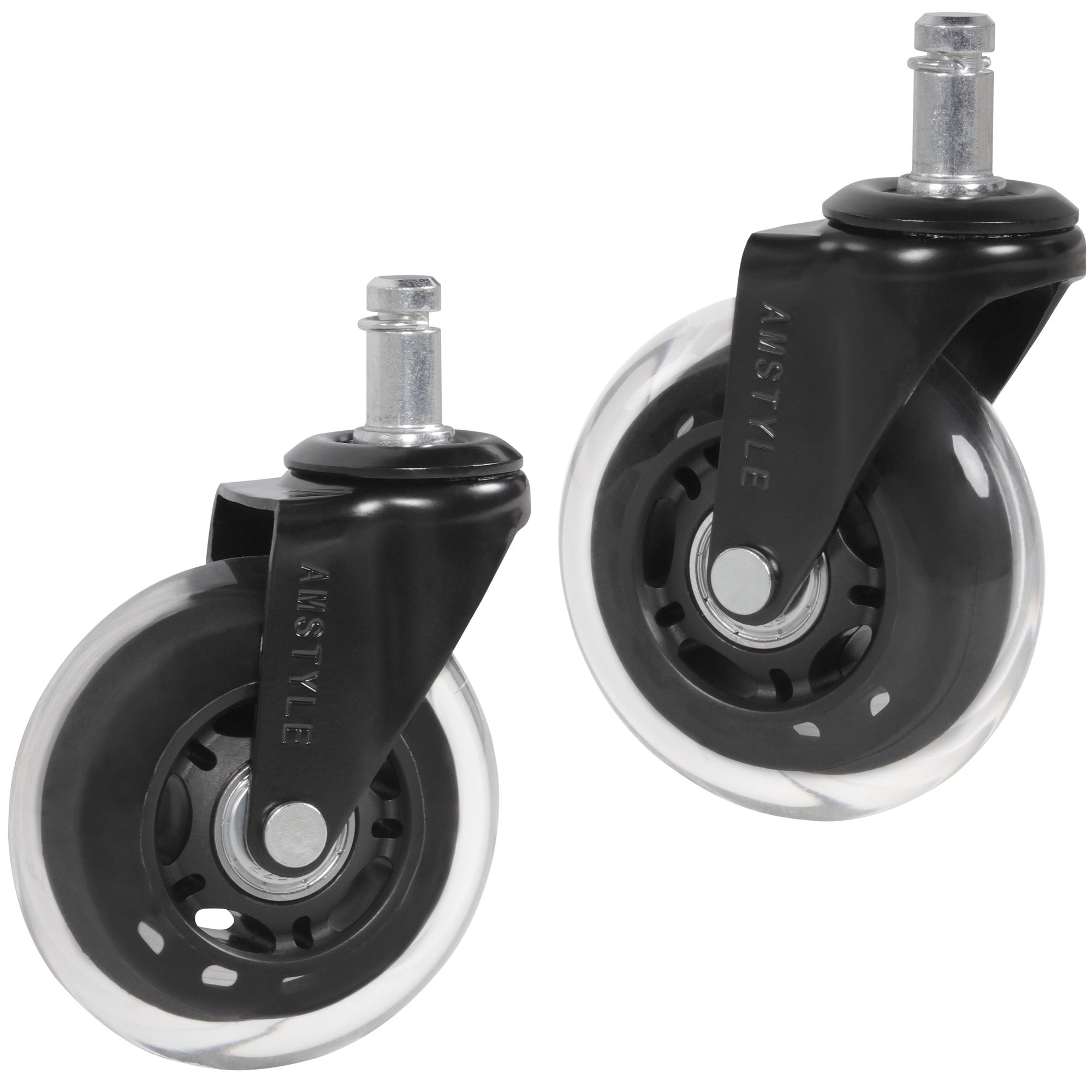 Set de 5 roulettes universelles silencieuses pour fauteuil de bureau | Transparent / Noir | Diamètre 75 mm, Tige 11 mm
