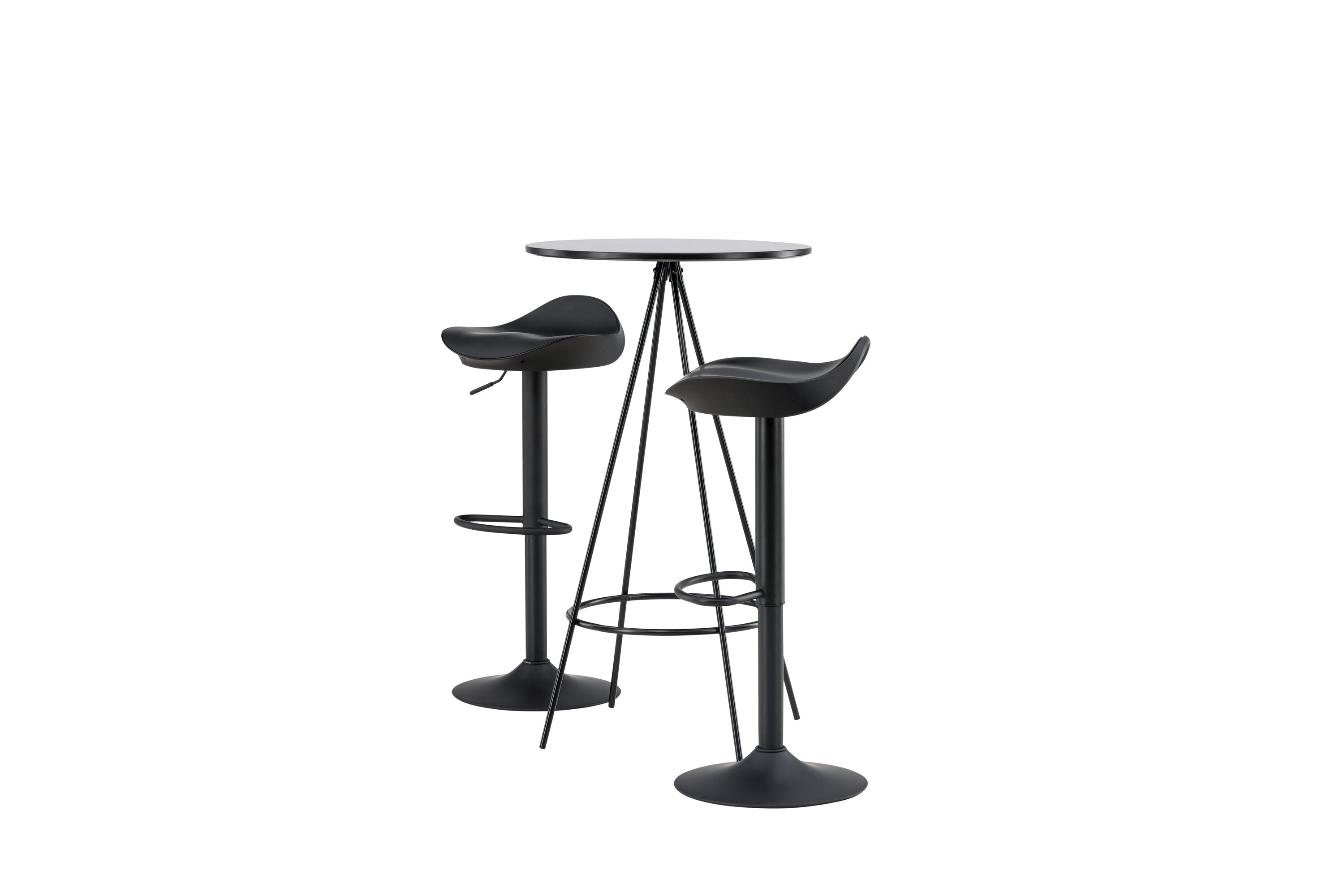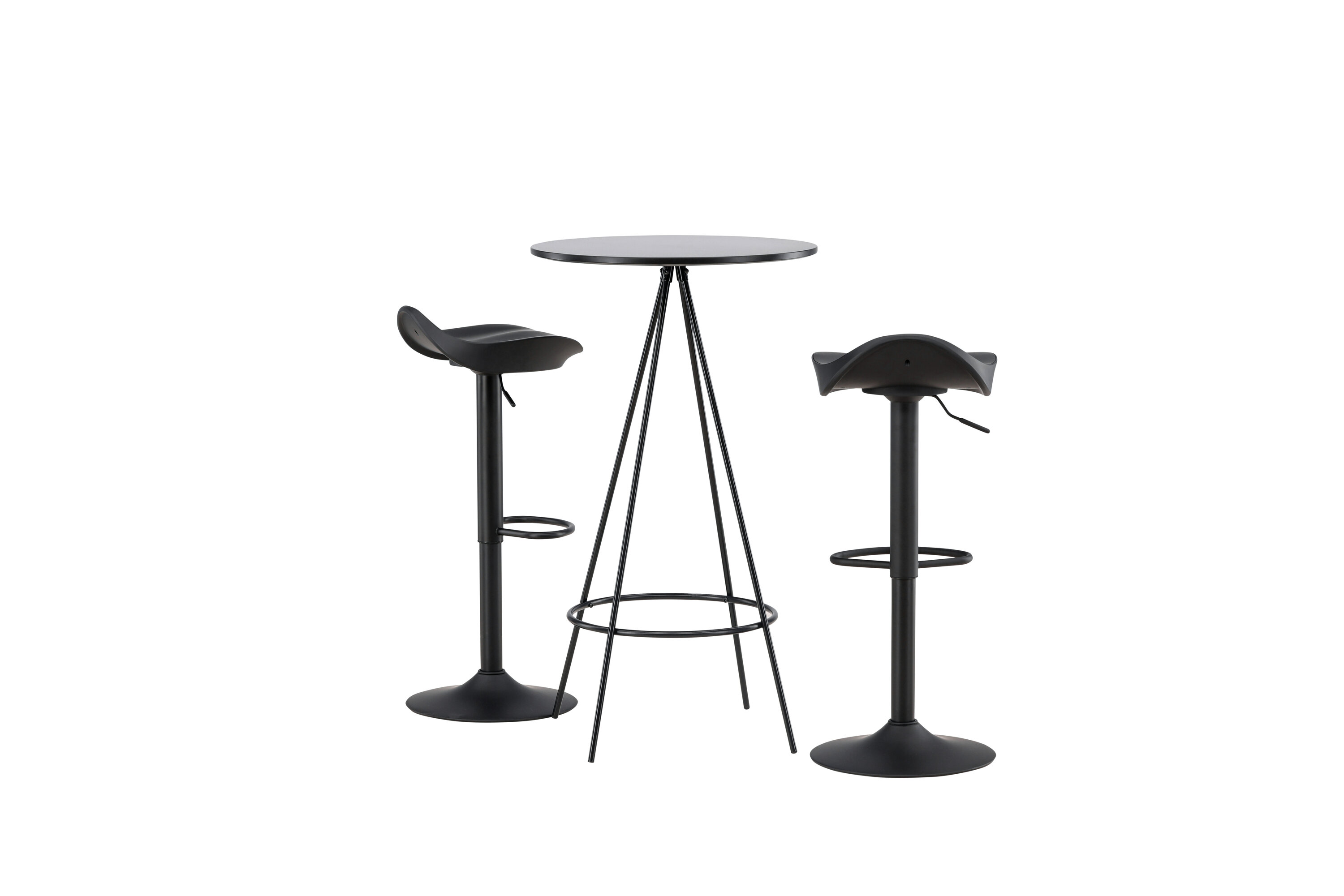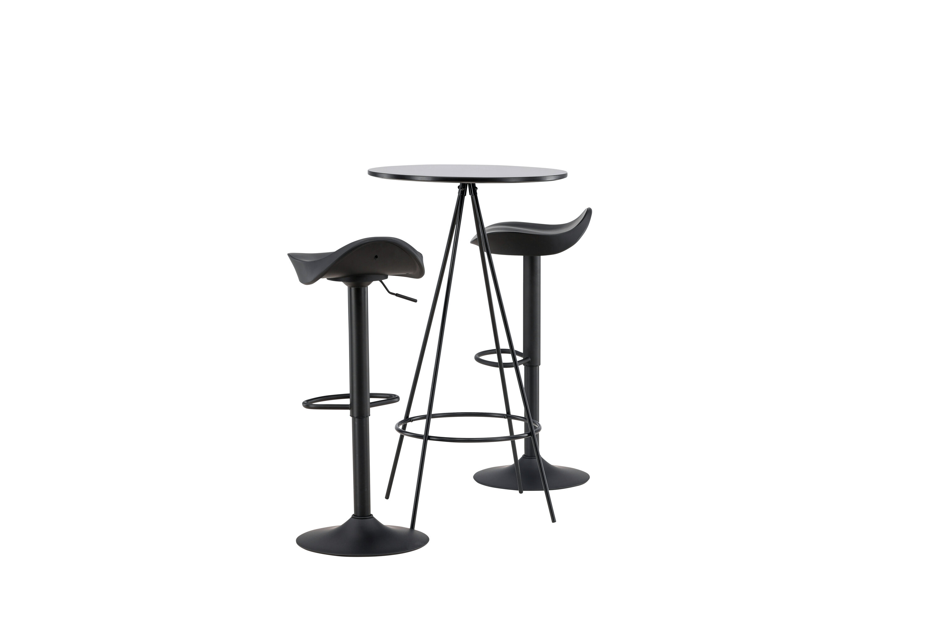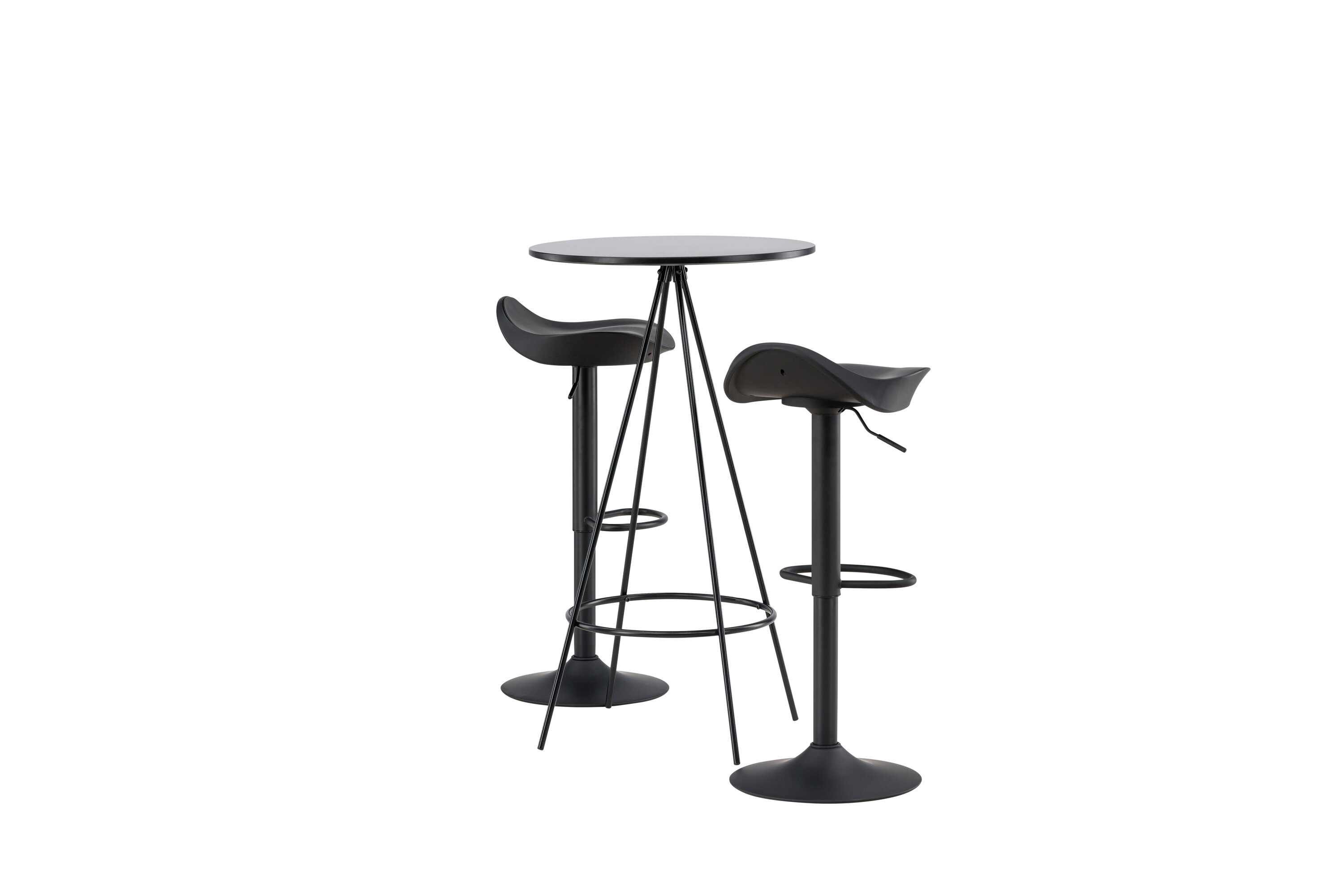Pourquoi ne pas meubler votre maison aussi moderne qu'intemporelle ? La table de bar Bistro a un design minimaliste et scandinave avec un plateau de table rond en MDF noir avec placage. Les pieds de table aérés en forme de cône sont légèrement évasés en métal noir et ont un cadre intégré pour le repose-pieds. Ici, avec des tabourets de bar noirs classiques de la série Adesto. La chaise a un design élégant avec un pied de trompette en acier noir et un siège simple en plastique noir. Ici, vous obtenez tout ce dont vous avez besoin ! Dimensions de la table : 60 cm.