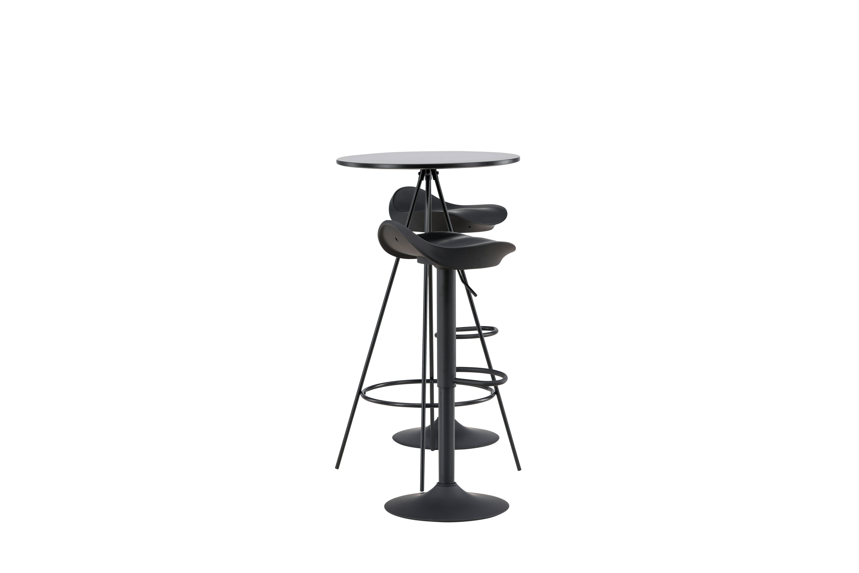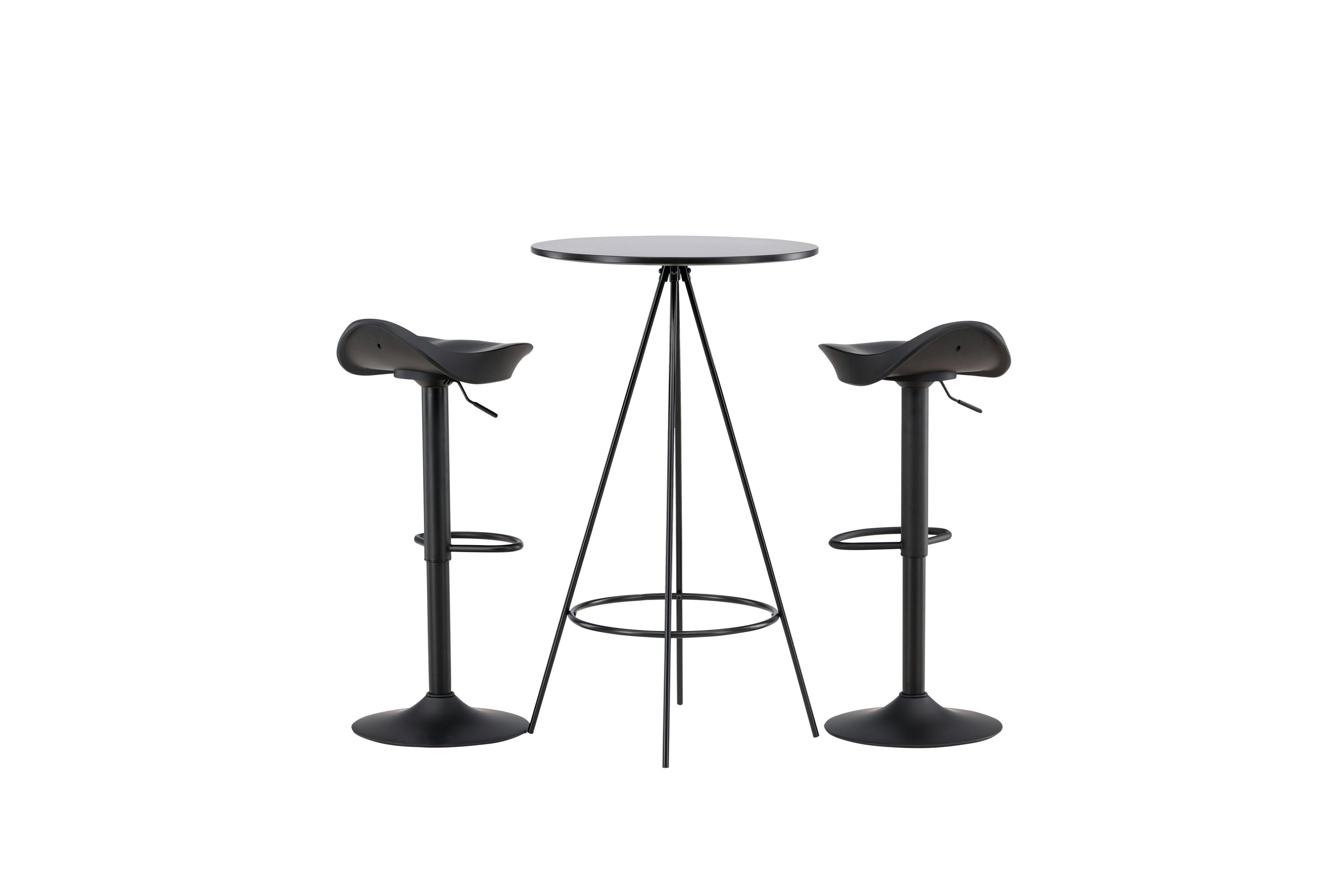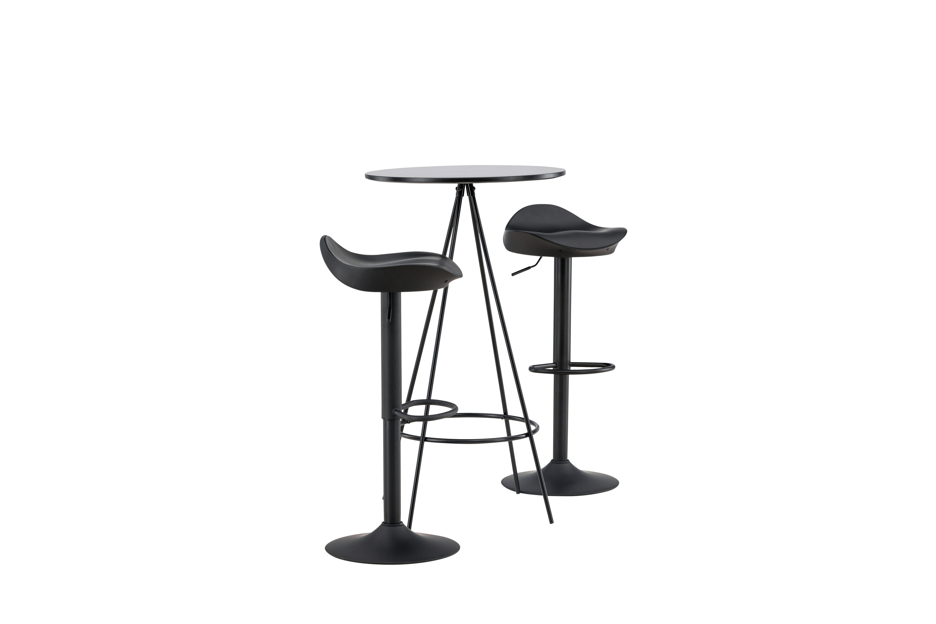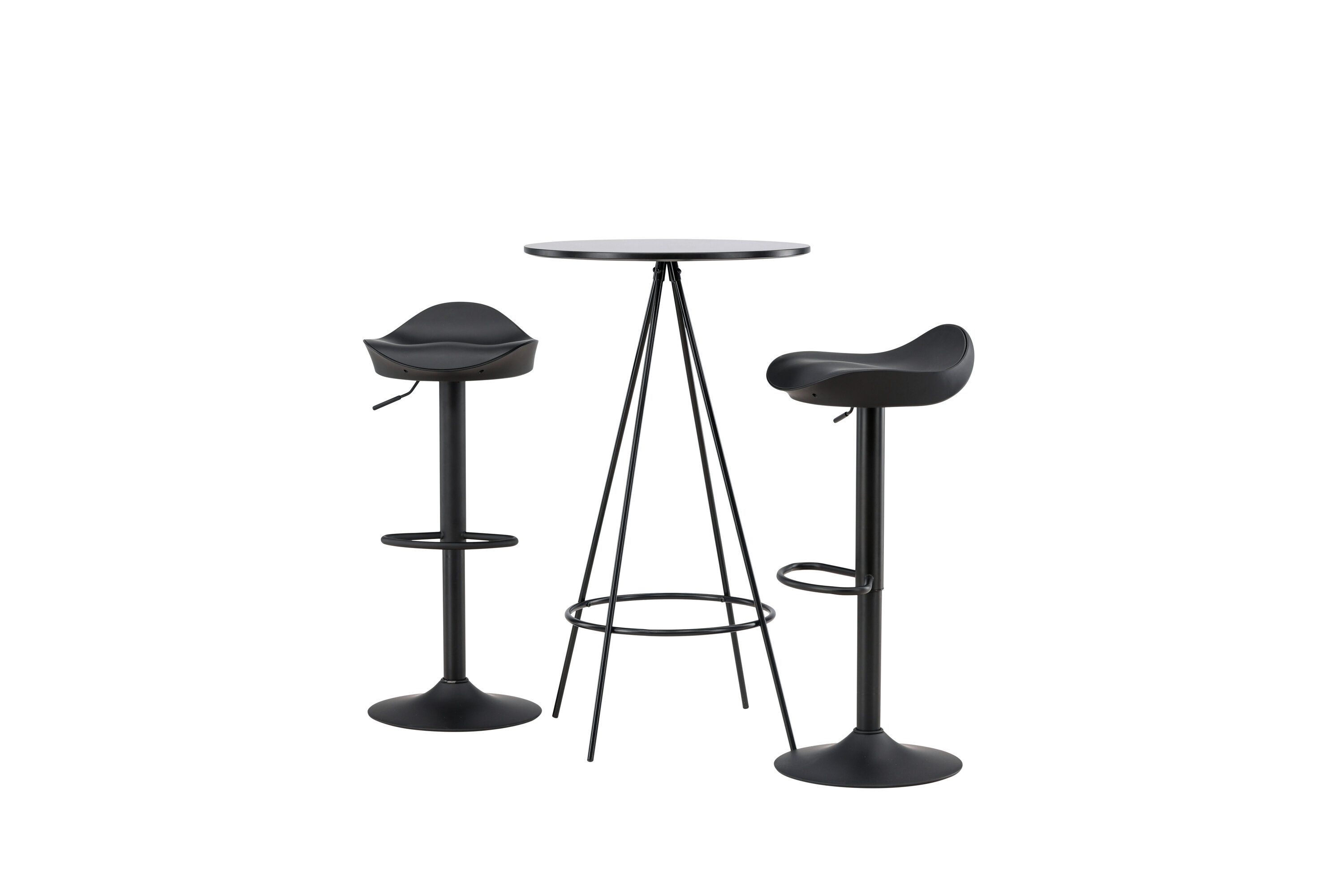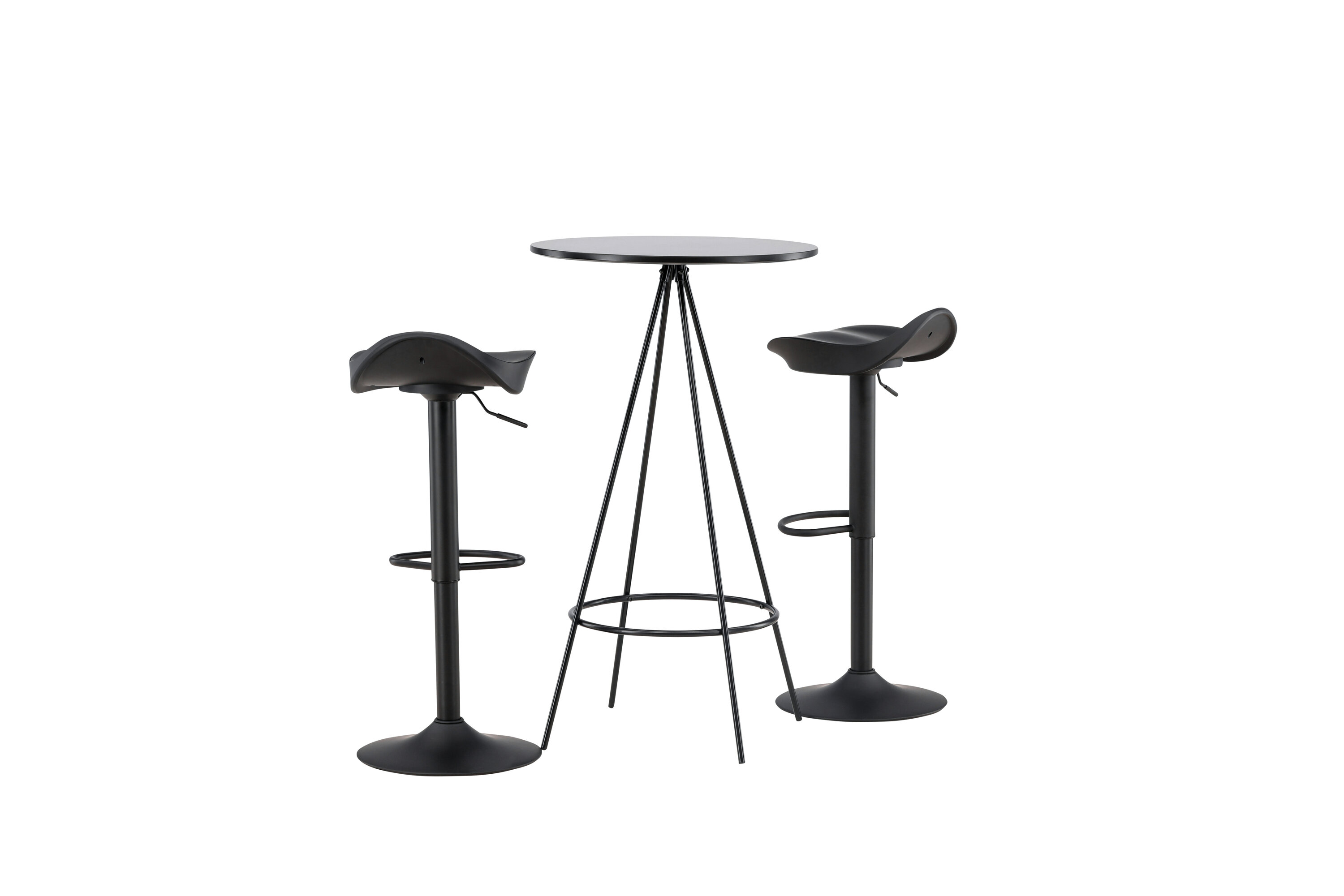 Pourquoi ne pas meubler votre maison aussi moderne qu'intemporelle ? La table de bar Bistro a un design minimaliste et scandinave avec un plateau de table rond en MDF noir avec placage. Les pieds de table aérés en forme de cône sont légèrement évasés en métal noir et ont un cadre intégré pour le repose-pieds. Ici, avec des tabourets de bar noirs classiques de la série Adesto. La chaise a un design élégant avec un pied de trompette en acier noir et un siège simple en plastique noir. Ici, vous obtenez tout ce dont vous avez besoin ! Dimensions de la table : 60 cm.