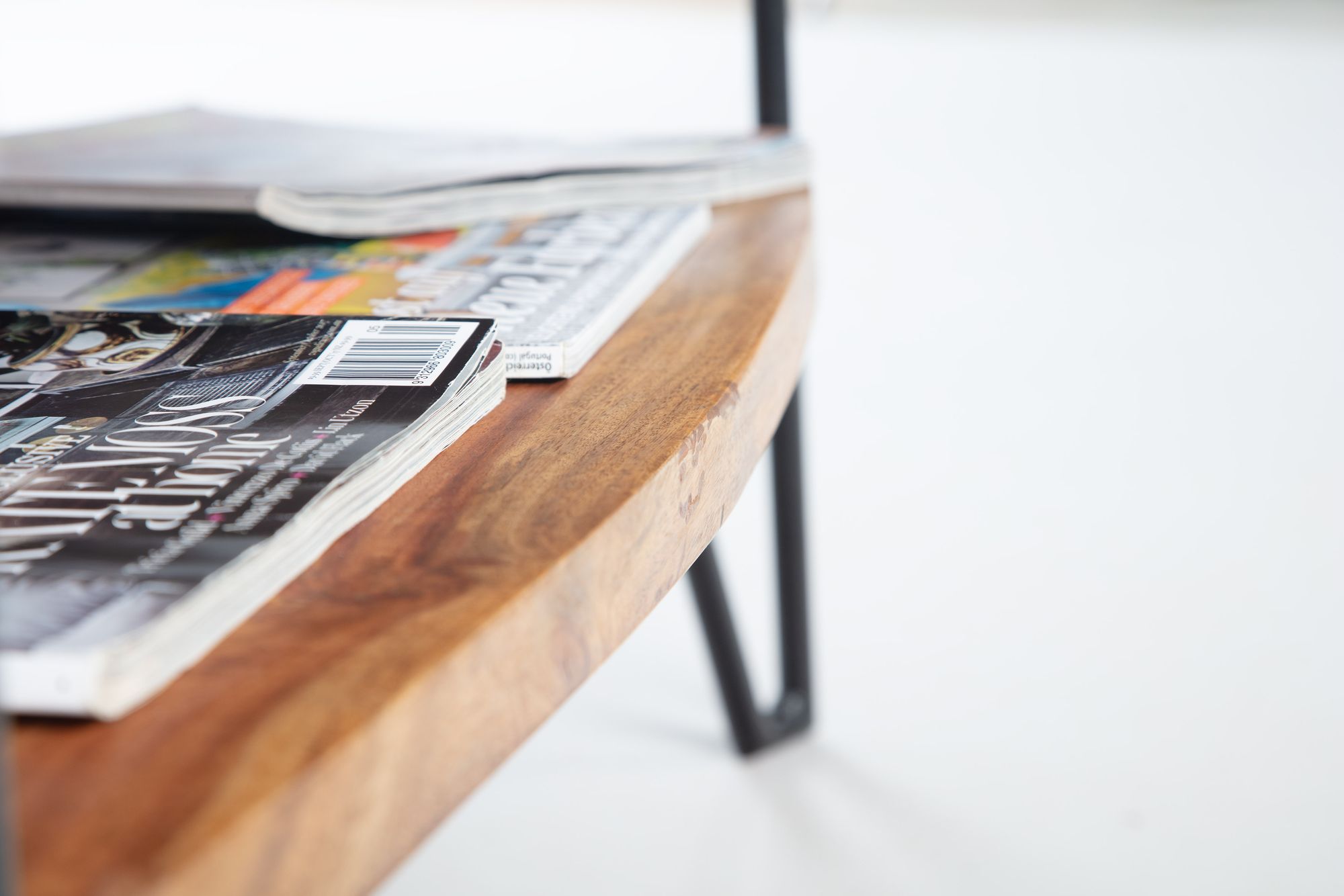 Apportez du caractère à votre salon avec cette table basse au style industriel alliant bois massif Sheesham et métal noir robuste, conçue pour un usage pratique et esthétique.