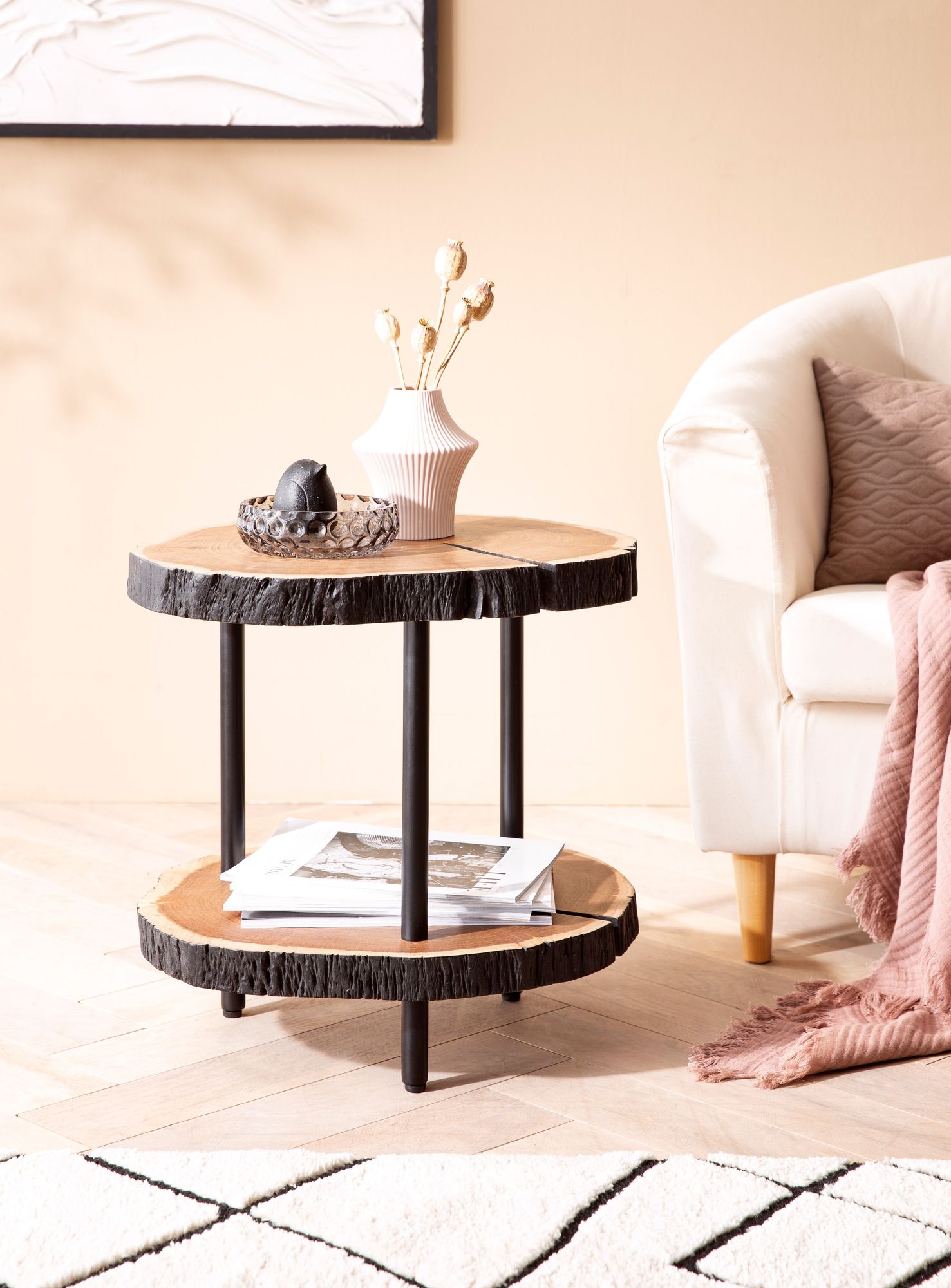 Table d'appoint bois de acacia massif / métal 45x45x50 cm table de salon